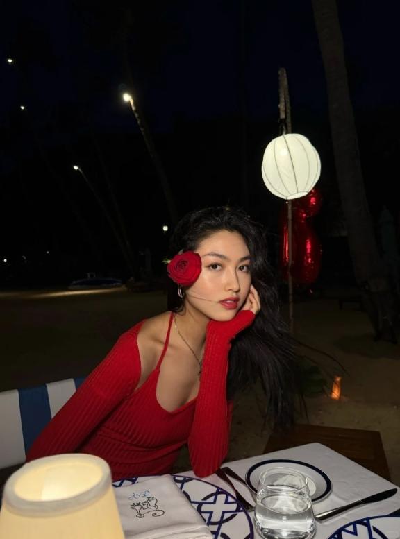 庆生会上,任晴佳穿了一条红色吊带紧身裙,完美继承妈妈的优秀基因,好身材尽显。