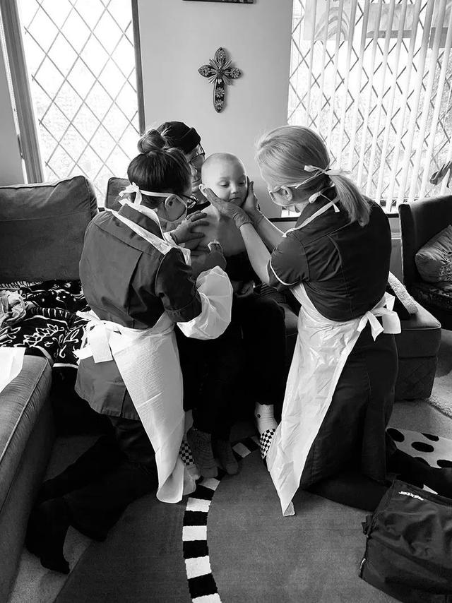 作者5岁的儿子弗兰克患有急性淋巴细胞白血病,需要治疗。封锁期间,医院护士上门实施化疗。