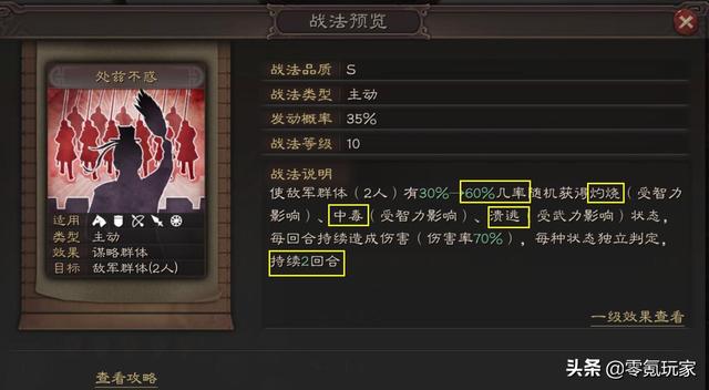 先不说其他效果,单单说60%概率造成128×2=256%伤害,这个战法就很强。